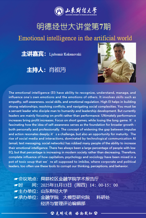 讲座 | Emotional intelligence in the artificial world