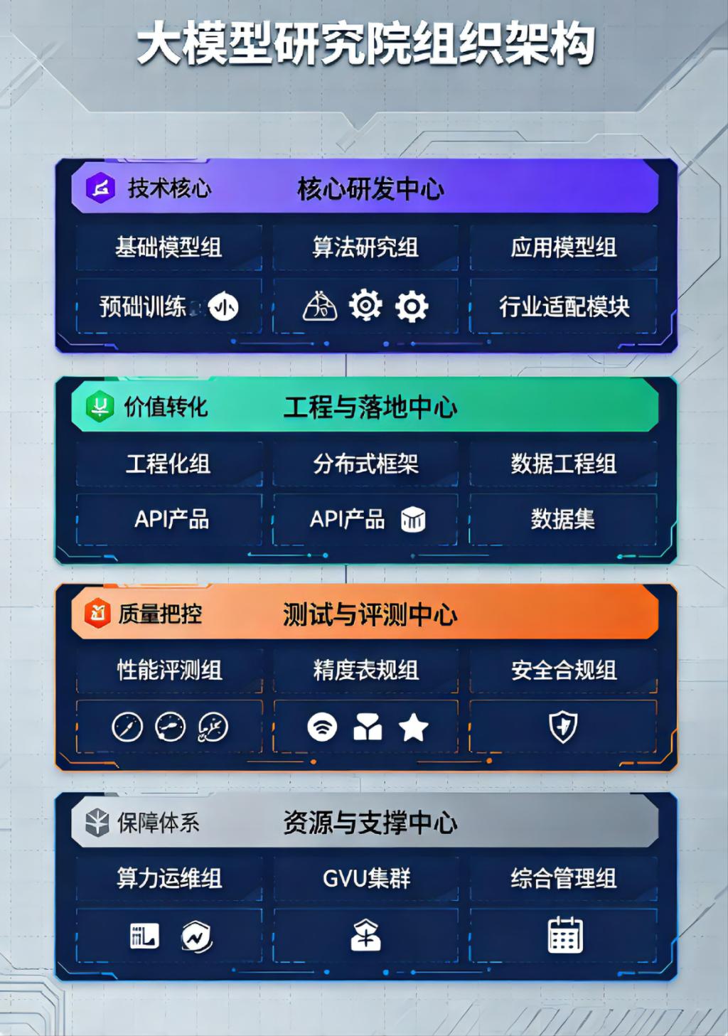 • 算力运维组:管理GPU集群、服务器等硬件资源,负责算力调度、集群维护、故障排查,保障训练稳定性。